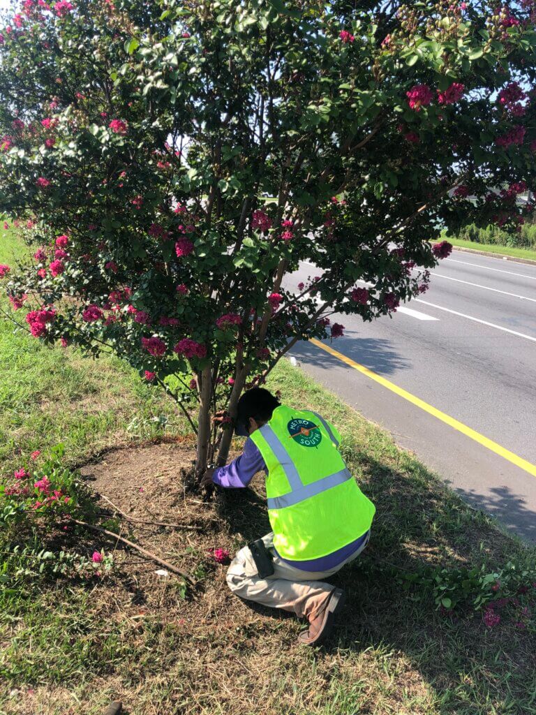 Every week, Russell Landscaping mows and cleans the equivalent of 13 football fields to make it attractive for businesses and visitors traveling through the district.